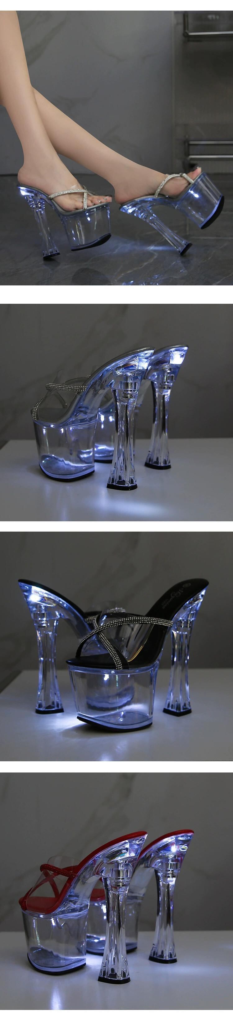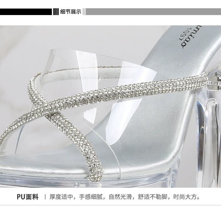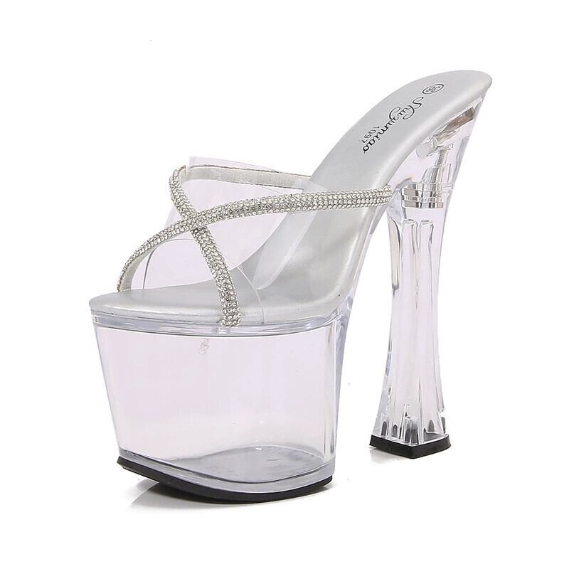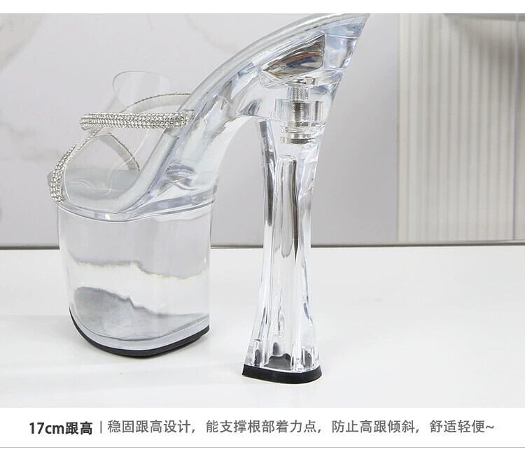 18 センチメートル透明スカイハイセクシーなオープントゥスーパーハイヒールモデルキャットウォークナイトクラブ厚いヒール防水プラットホームサンダルとスリッパ 靴 シューズ ミュール shoe98050242739