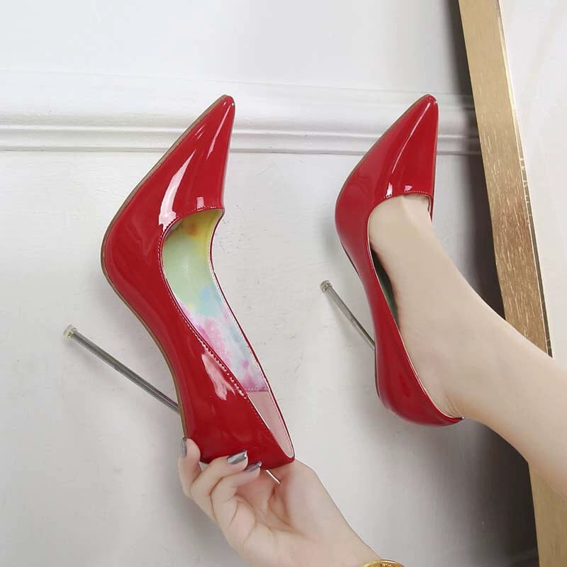 セクシーなナイトクラブ尖ったつま先の靴 12 センチメートル背の高いモデルキャットウォーク宴会ハイヒール浅い口細いかかと大サイズ シューズ 大きめサイズ shoe65295393102