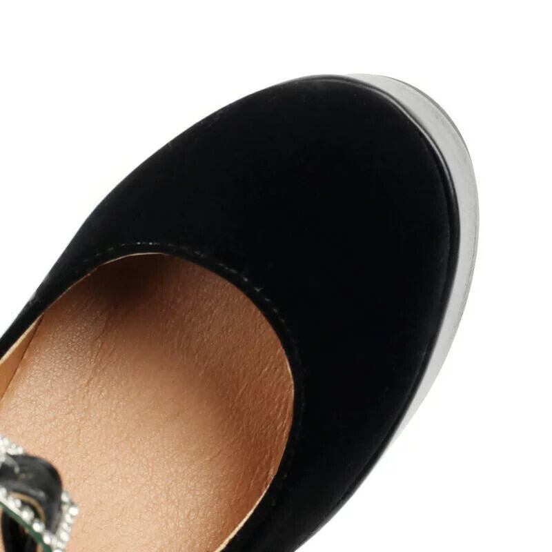 厚底新スタイル超ハイヒールシンプルハイヒールシューズ太ヒール14cmスエード浅口シングルシューズラウンドトゥ一言ストラップ婦人靴 スウェード ラウンドトー shoe74729405501