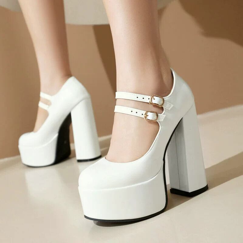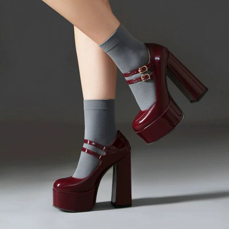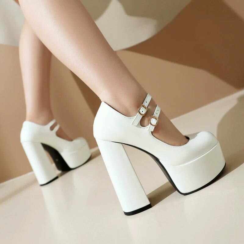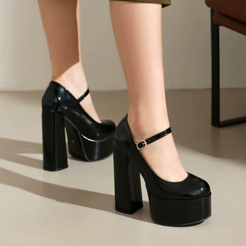 14cm厚底メリージェーンシューズ、厚底浅口防水プラットフォーム、厚底パテントレザーハイヒール、ロリータ英国婦人靴 shoe6071256814